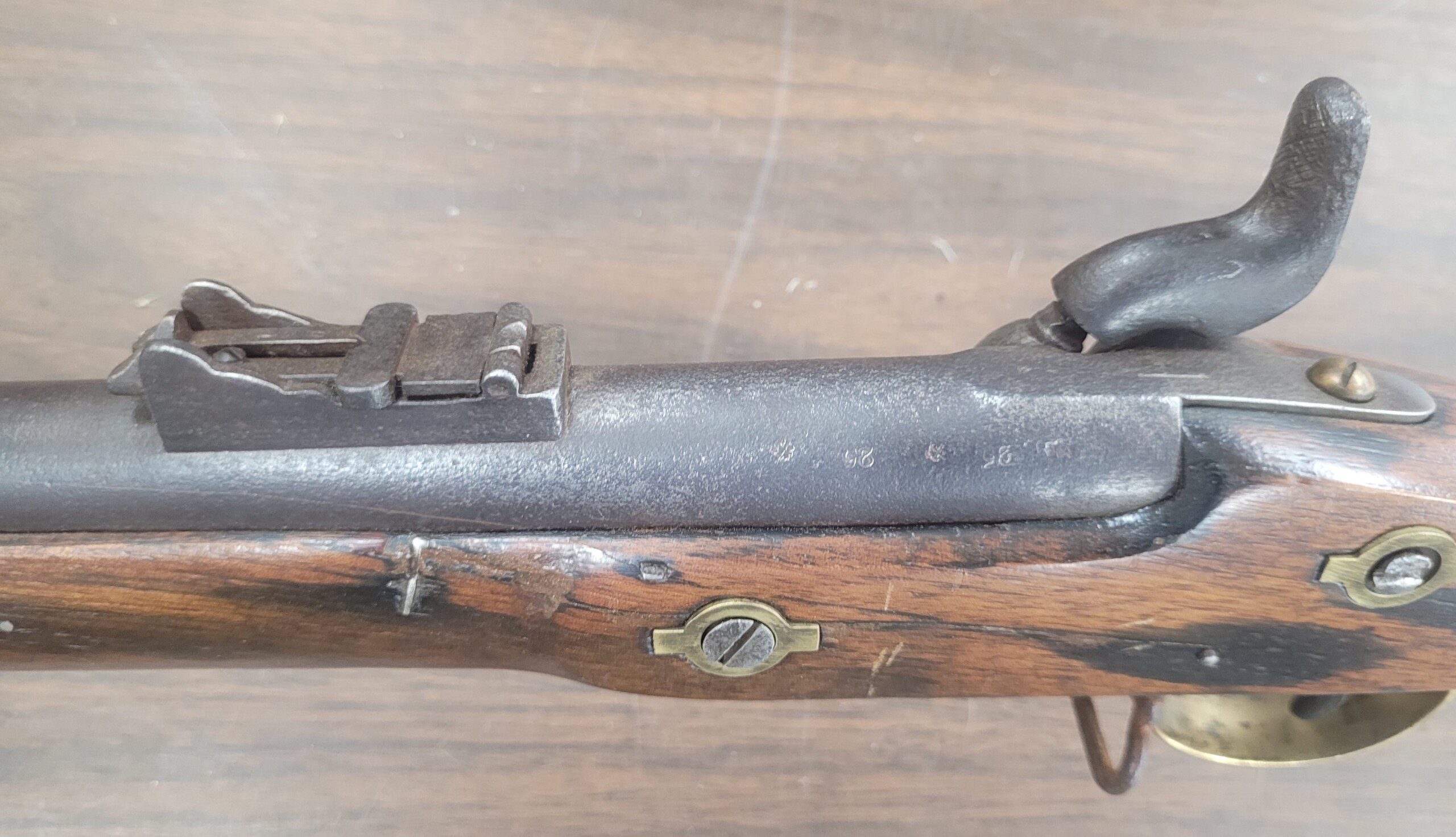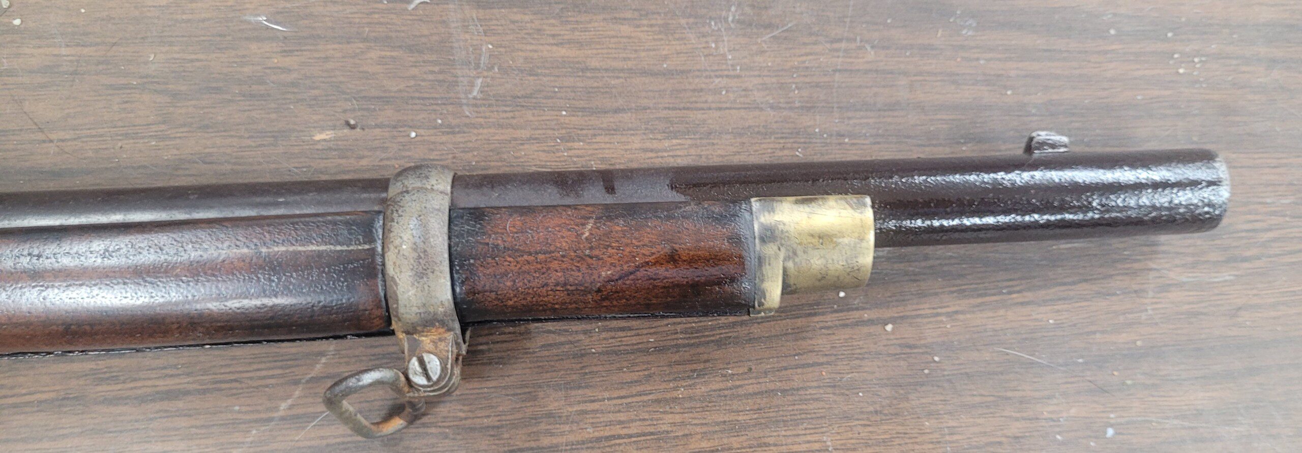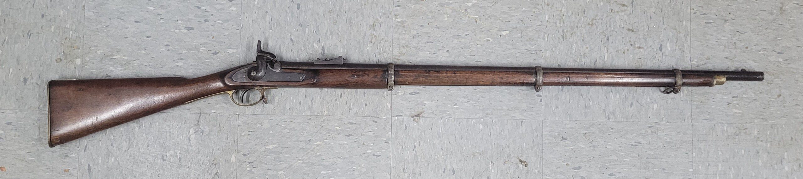 Very solid example of the standard P53 Tower Enfield chambered in .577 caliber and dated 1862. The bottom of the triggerguard is deeply stamped with Louisiana state troop markings known to have been applied as early as 1865. Most of these weapons were examples issued during the Civil War that were re-issued to the state militia into the early 1870s era.
