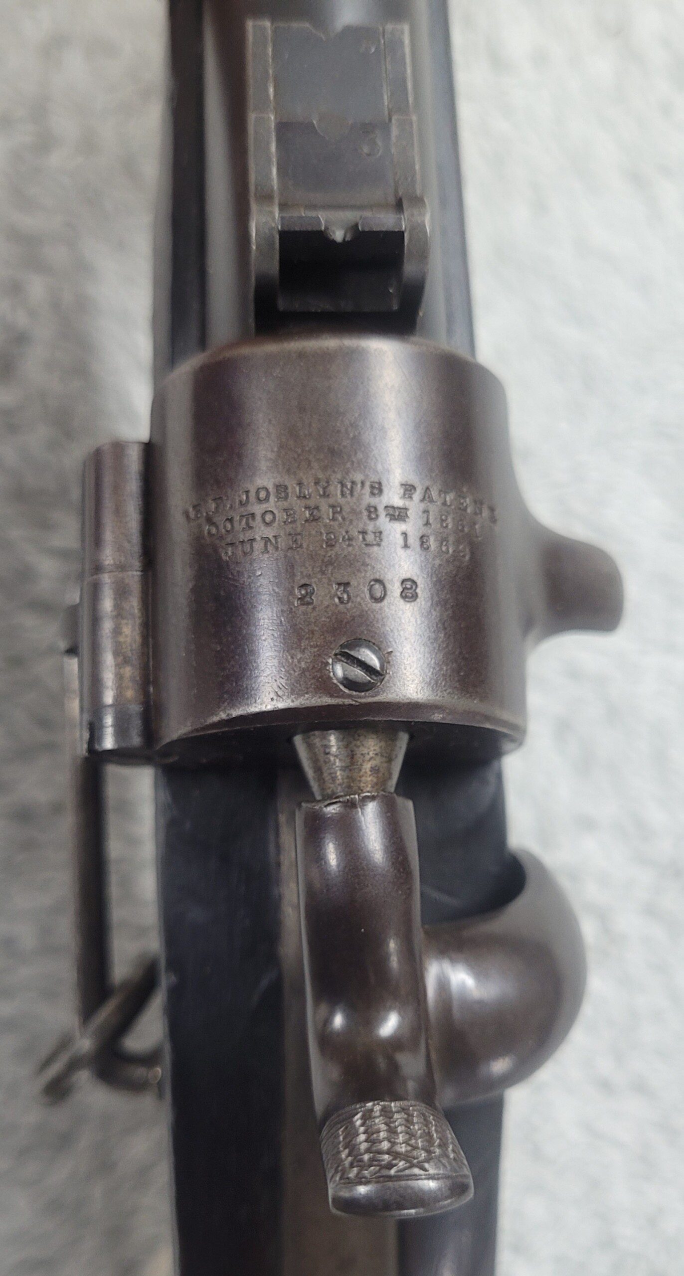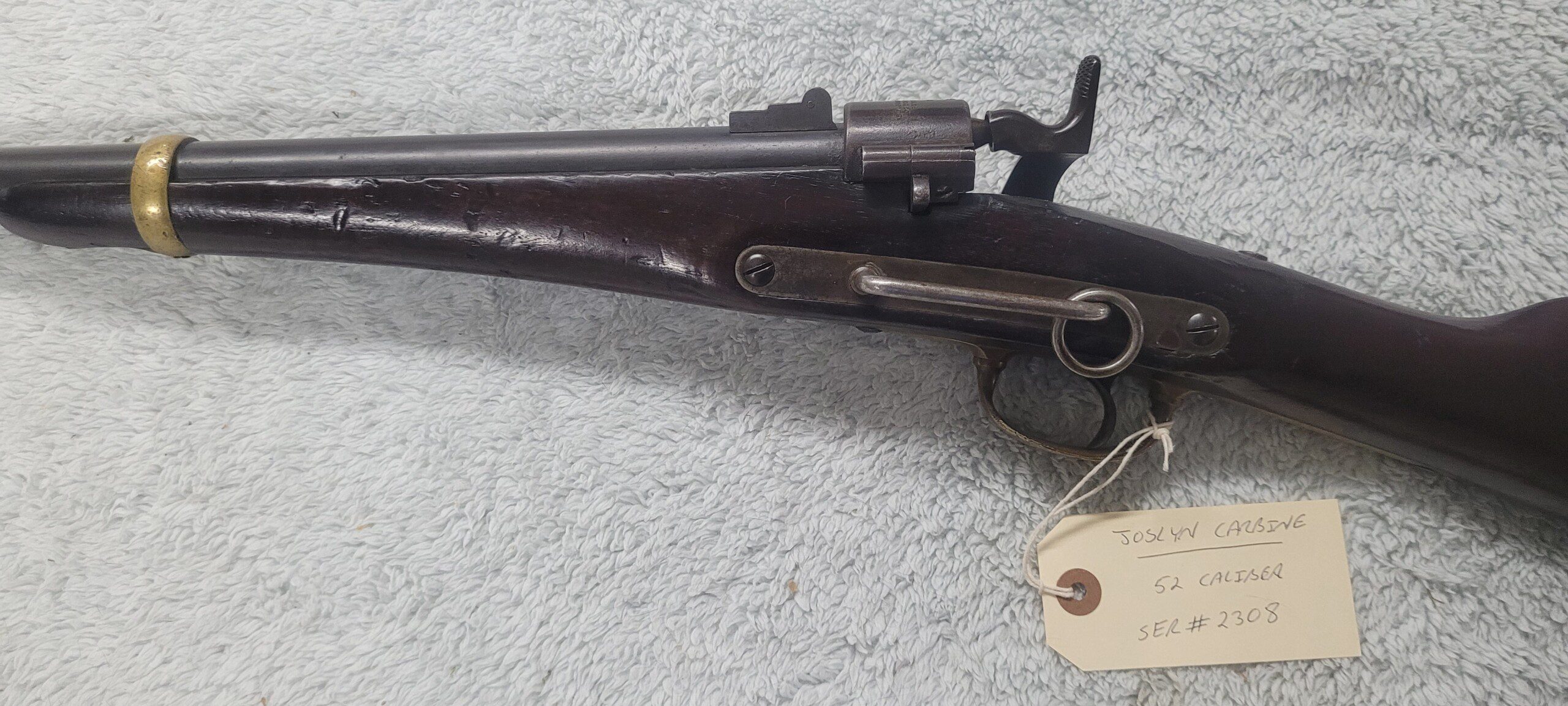 Very solid example of this scarce breechloading metallic cartridge Union carbine as issued late 1863 until 1865. It was designed to chamber the .56-56 Spencer round or its own unique cartridge, the .54 Joslyn.