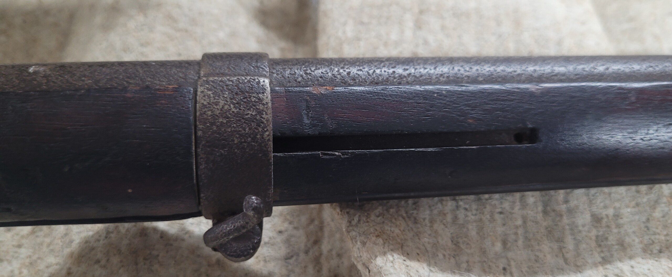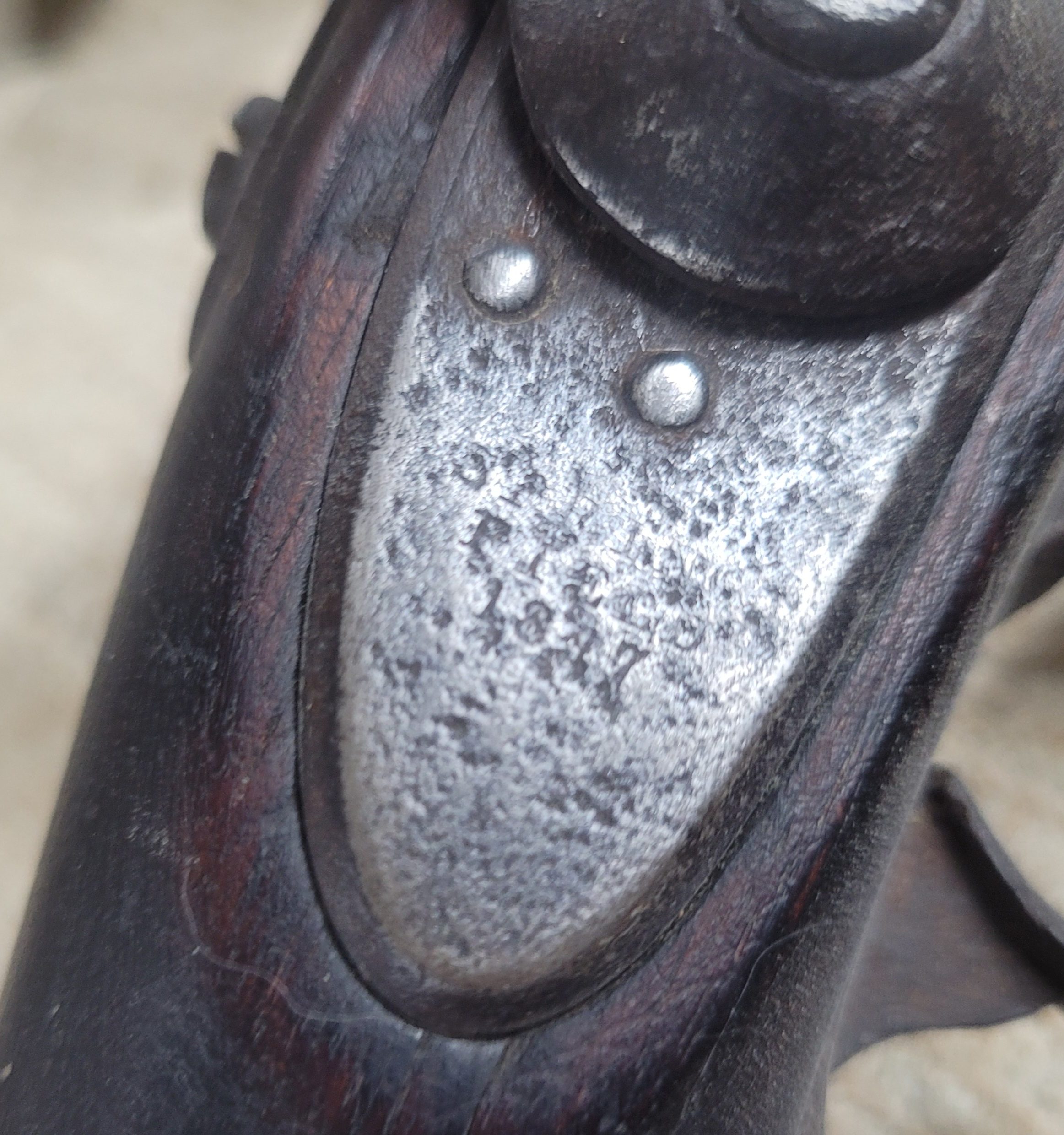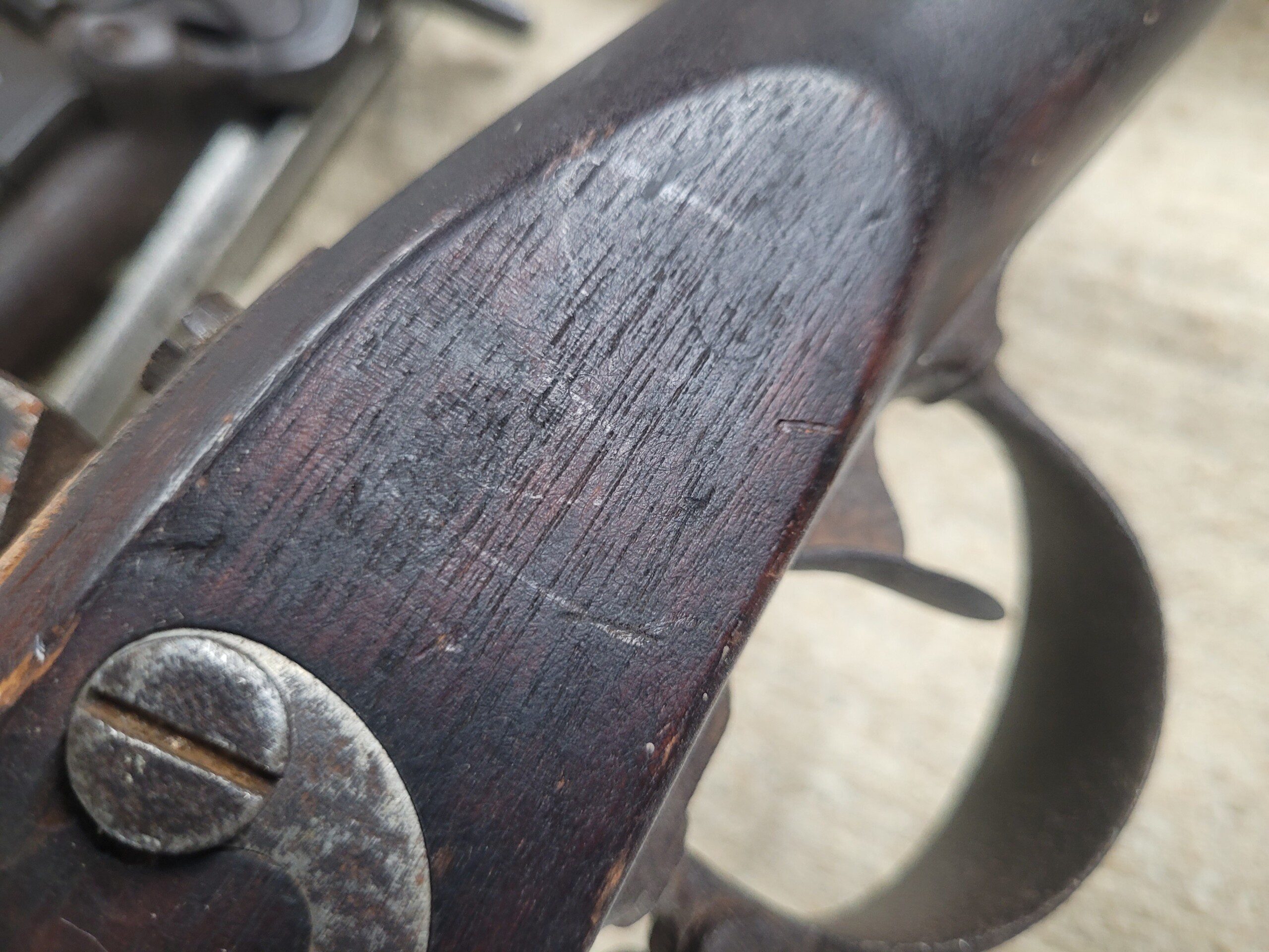 Fresh from an estate sale in Tennessee, this old war beast was manufactured in 1847 and likely saw service in both the Mexican and Civil Wars. It is fully functional overall and exhibits a deep brown age patina which in uniform and smooth overall. The middle and upper band springs are missing—no idea why!